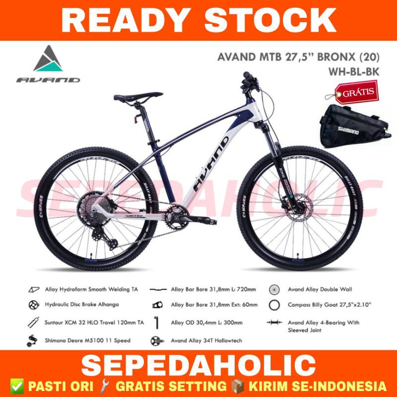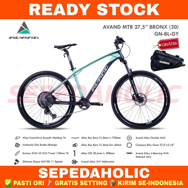 Sepeda Gunung 27.5 Inch MTB AVAND BRONX Alloy Shimano Deore 11 Speed Rem Hidrolik Garansi Resmi 5 Tahun