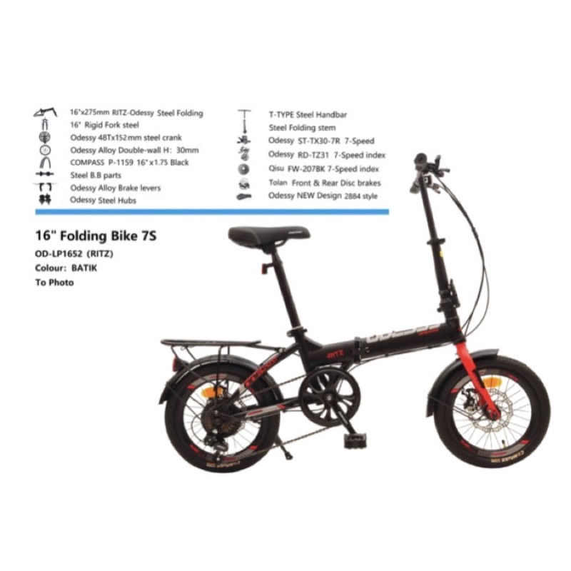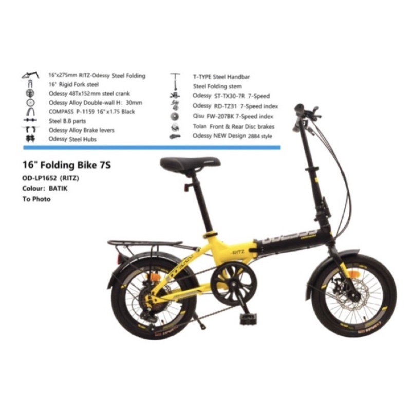 Sepeda Lipat Odessy 16 & 20inch 52 Ritz With Bahasi dan Spakbor Hi Teen Steel 7S