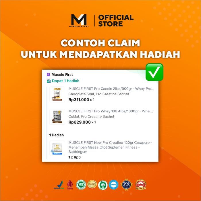 MUSCLE FIRST Pro Casein 2lbs/900gr - Whey Protein Suplemen Fitness - Chocolate Soul Pro Creatine Sachet