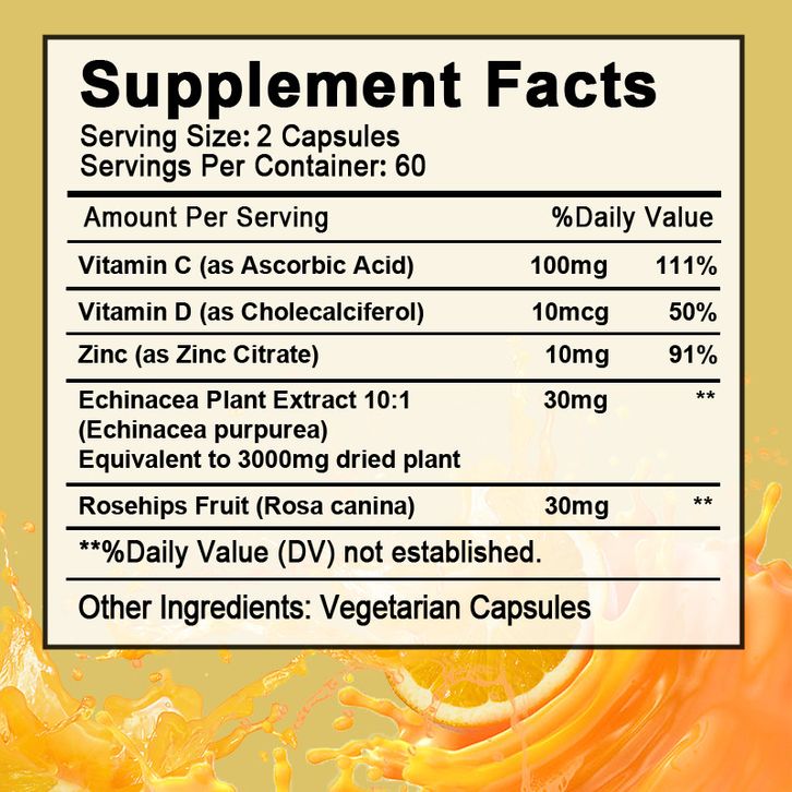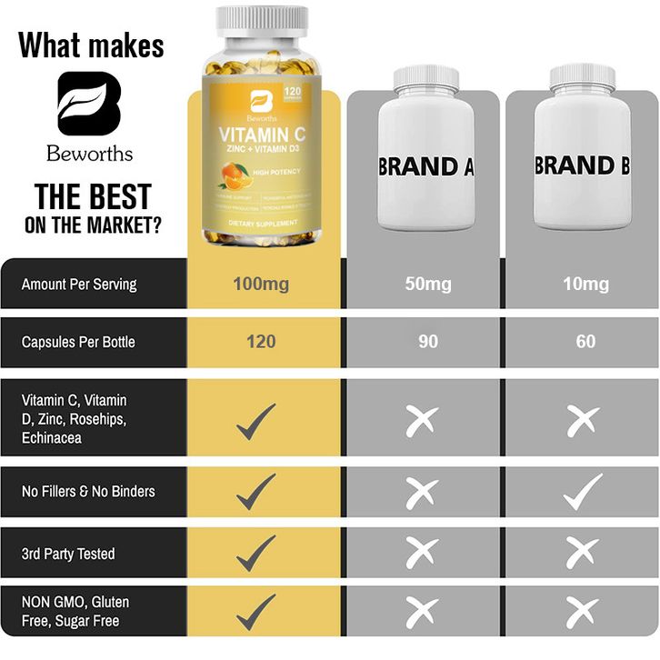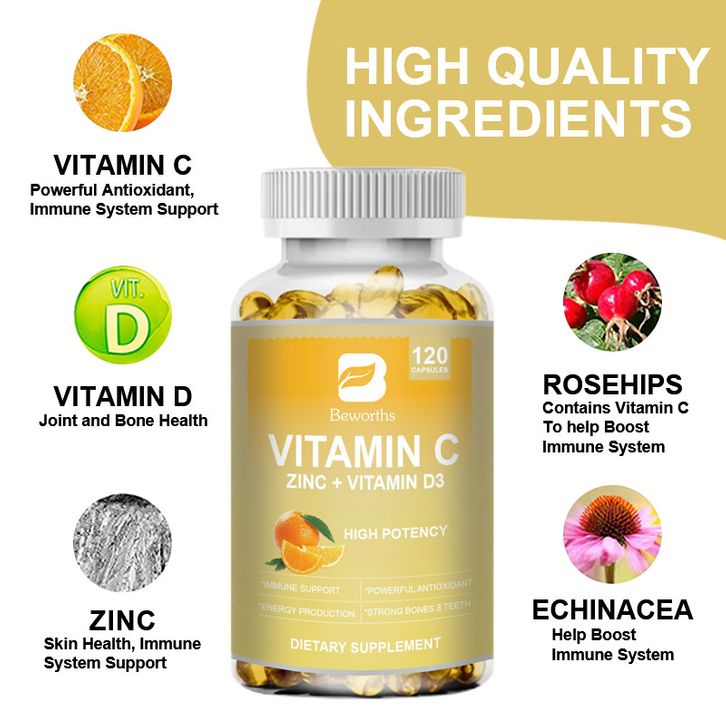 Beworths Biotin Vitamin C with Zinc Capsules Vitamin C 100MG, Zinc 10 Mg, Vitamin D3 250 IU Echinacea Extract & Rose Hip