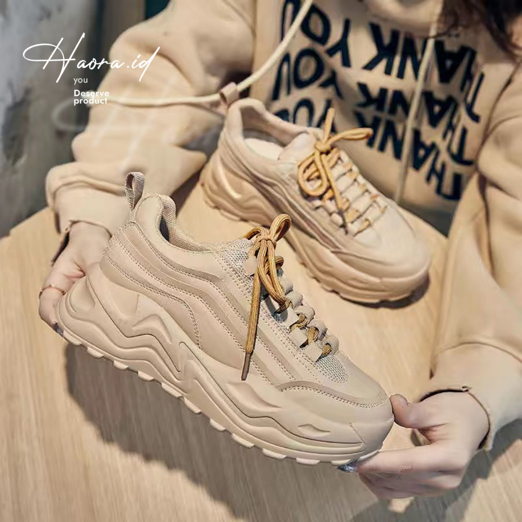Sepatu Sneakers Wanita Korea HR06-Haora Kulit Sintetis / Sepatu Sneakers Fashion / Sepatu Kasual ori Terlaris