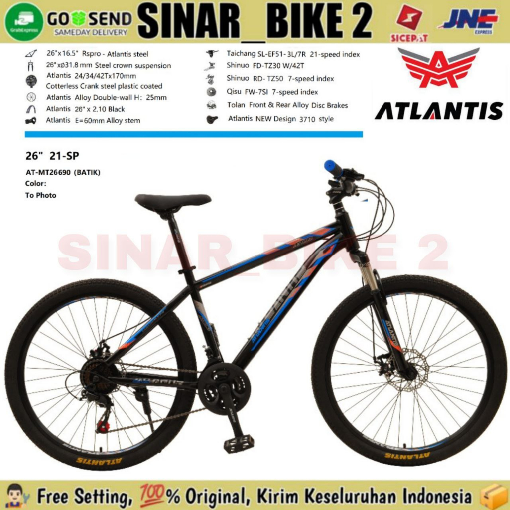 Sepeda Gunung MTB ATLANTIS 690 & 730 & 735 Ukuran 24" 26" 27.5" Inch 21 Speed