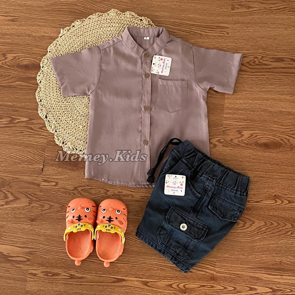 (FLASH SALE) SETELAN PENDEK CARGO JEANS / SETELAN ANAK KEMEJA KOKO JEANS / ONE SET KEMEJA / BAJU SETELAN ANAK LAKI LAKI