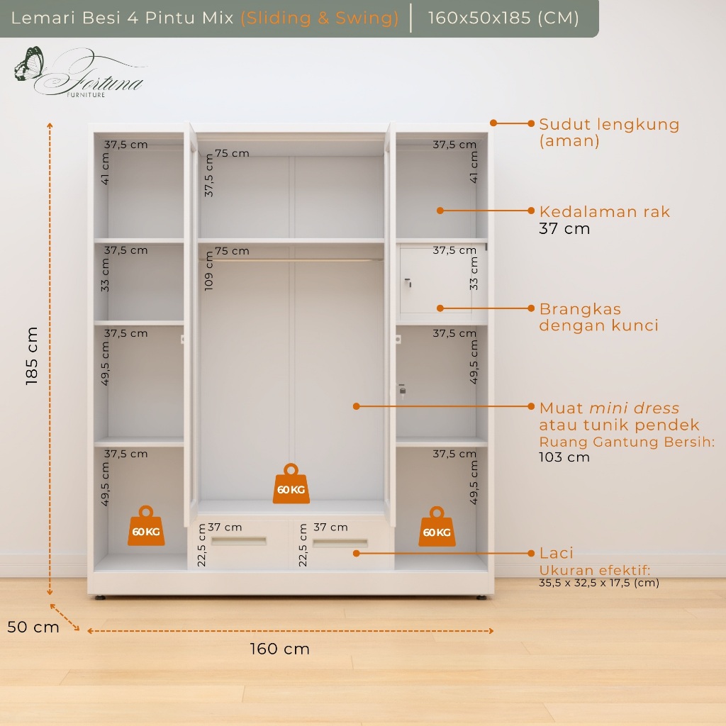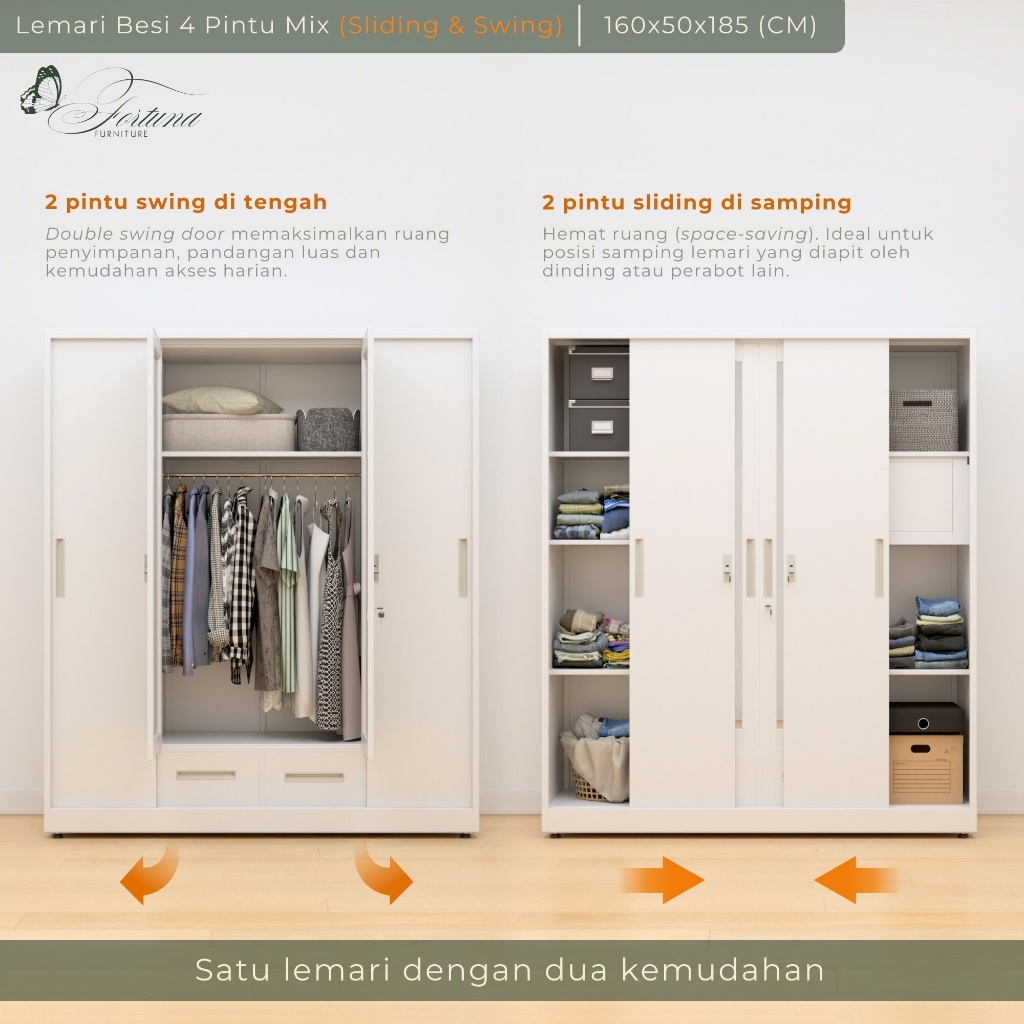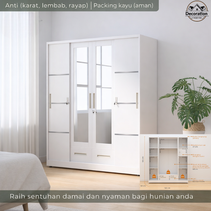 Lemari sliding besi 3 2 4 pintu Lemari Pakaian Pintu Geser Kaca 3 Pintu Ukuran Besar 160cm – Lemari Baju Kuat Tebal