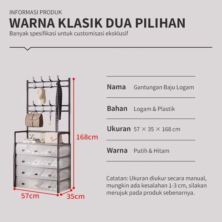Hitam+Rak 56*34*167 , Putih+Rak 56*34*167, 5L(58*29*94CM), 4L(58*29*77CM), 3L (58*29*60CM)