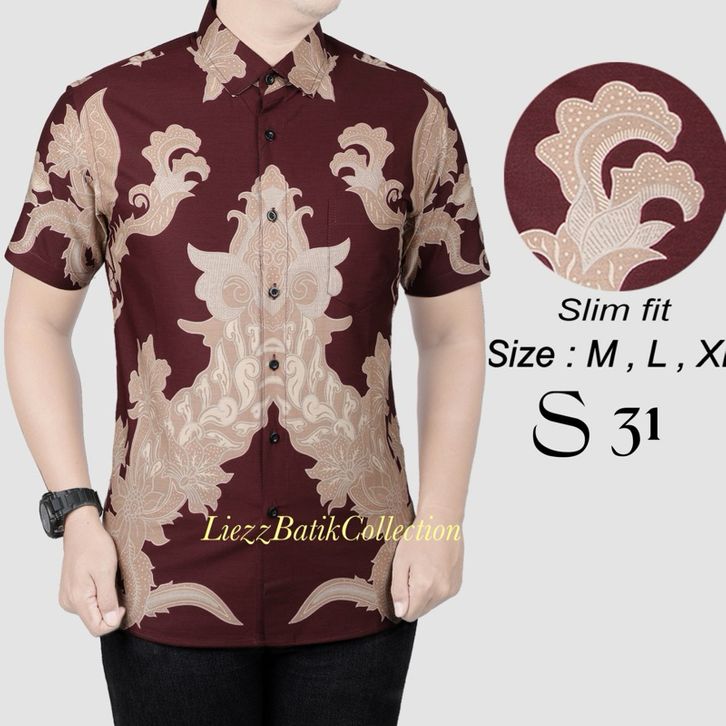kemeja batik lengan pendek premium model slimfit motif modern tidak pasaran