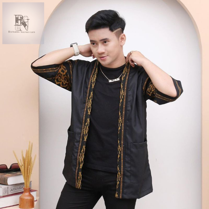 BoeNoe - Outer Kimono Atasan Blazzer Tenun Songket Asli Ethnik Pria/Wanita Dewasa cardigan Loose