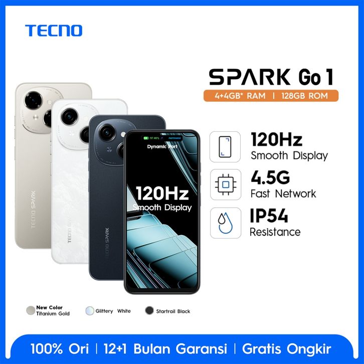 TECNO SPARK GO1 4GB+4GB*+128,120Hz Display, T615+4.5G Network,5000mAh+15W,IP54,Android 14