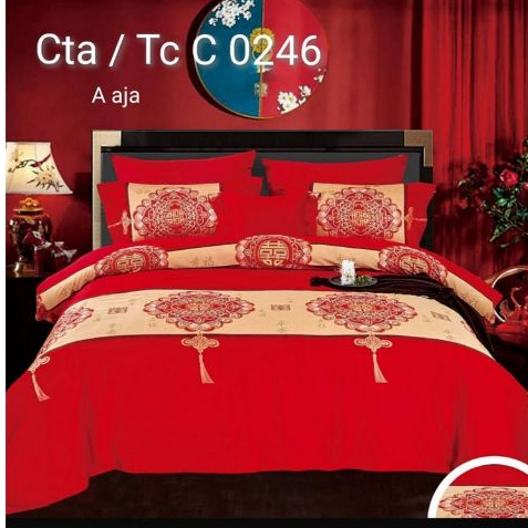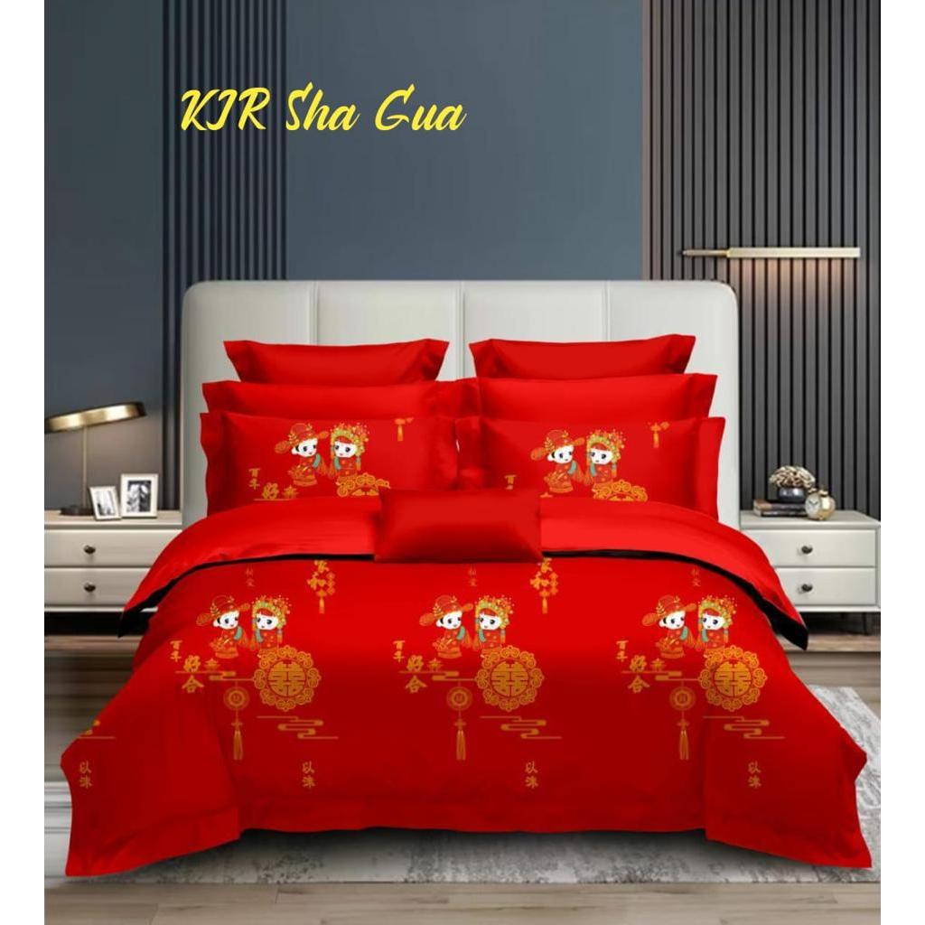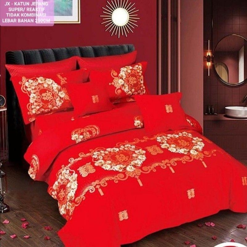 SPREI KATUN JEPANG WARNA MERAH MOTIF SHUANG XI EDISI WEDDING T.40 Kualitas Premium Limited Edition