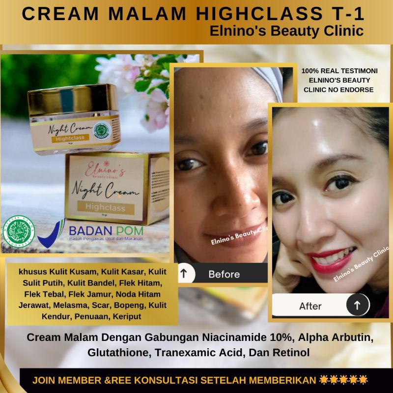 PELEMBAB WAJAH ELNINO'S CREAM MALAM HIGHCLASS TAHAP.1 KULIT BANDEL FLEK KUSAM SUSAH PUTIH KRIM PEMUTIH WAJAH ORIGINAL