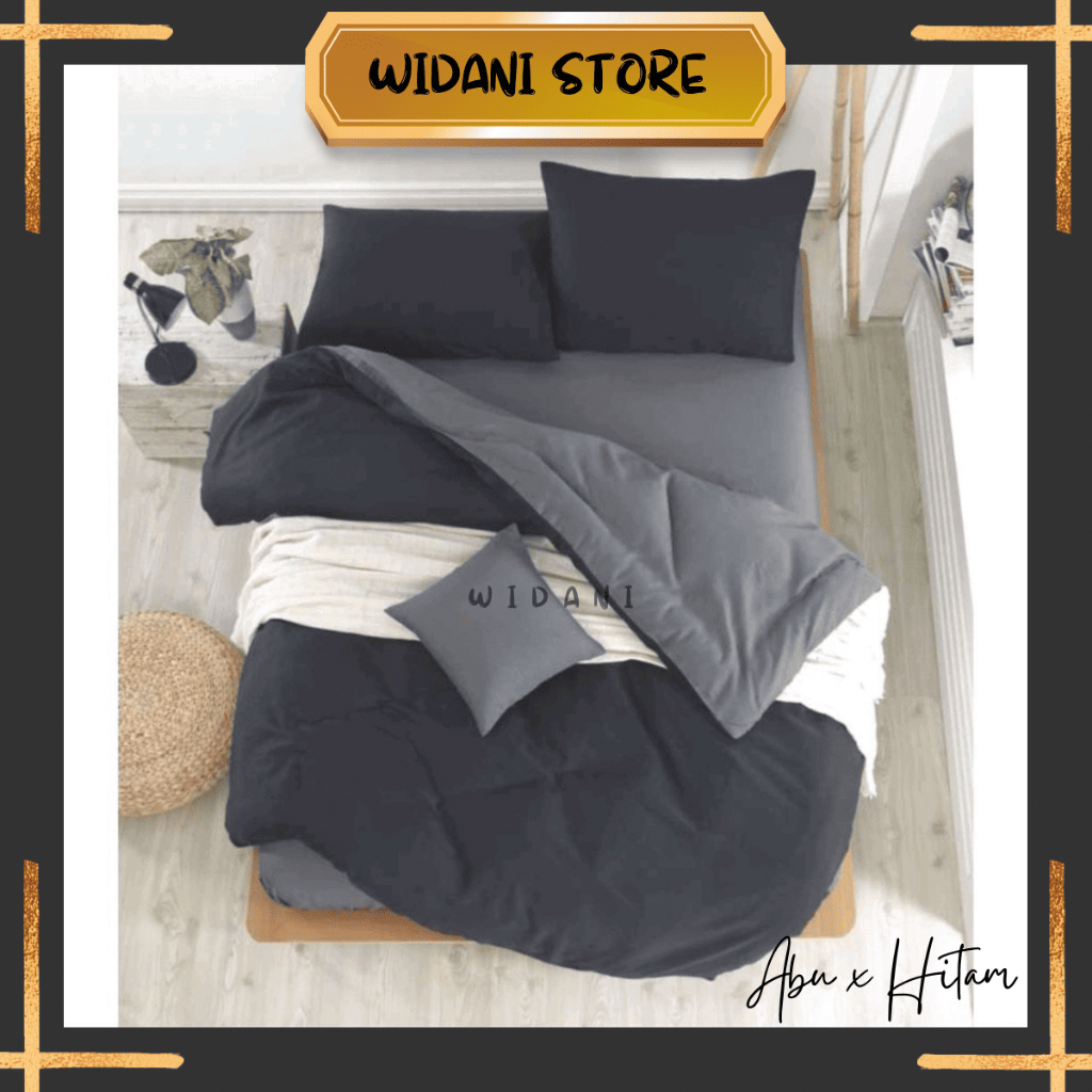 BED COVER SET SPREI POLOS ABUTUA MIX HITAM TWOTONE AESTHETIC [WIDANI STORE]