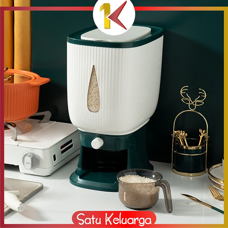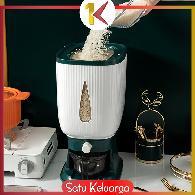 SK C360 Dispenser Beras 10 KG Rice Dispenser Tempat Wadah Penyimpanan Beras Otomatis Rice Box 10 Kg Dengan Wadah Pengeri