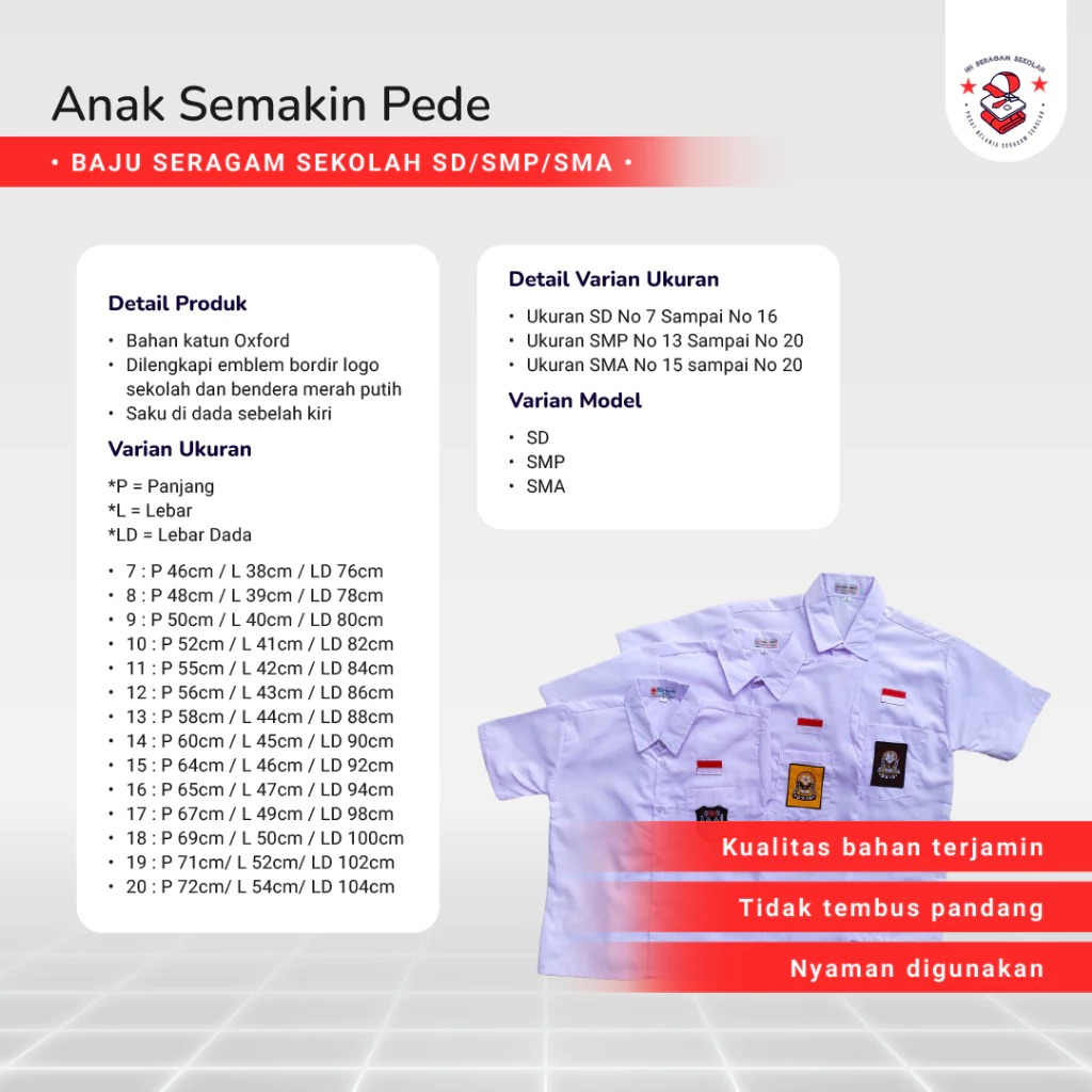 Seragam Sekolah SD SMP SMA Kemeja Putih Baju Atasan Lengan Pendek Bet Bordir Kain Oxford [GRATIS ONGKIR]