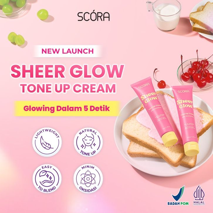 SCORA TONE UP CREAM SHEER GLOW TONE UP CREAM 30 GR KRIM PENCERAH WAJAH ANTI KUSAM TIDAK OKSIDASI