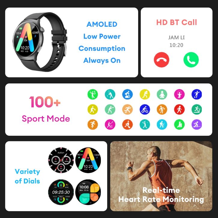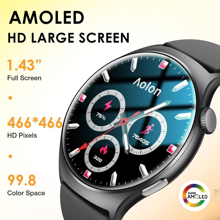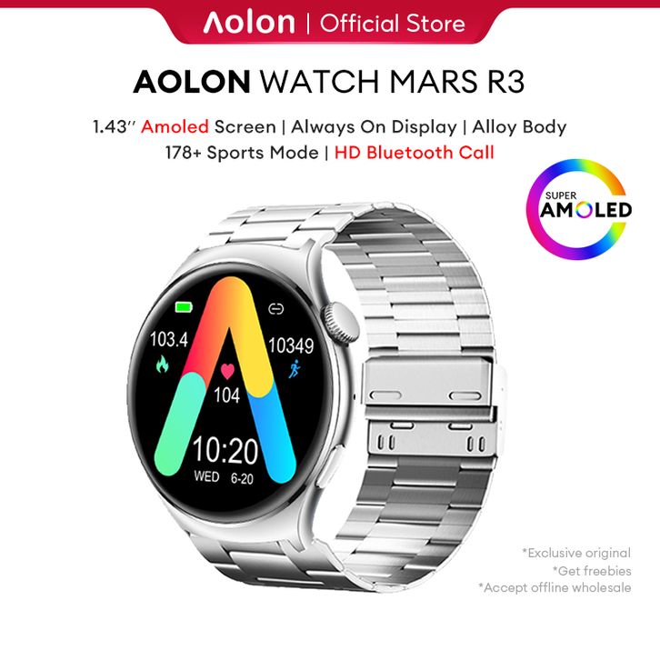 Smartwatch Aolon Mars R3 Original 60Hz AMOLED Screen | Running Pace | Always On Display | 200+ Watch Face | 178+ Sport