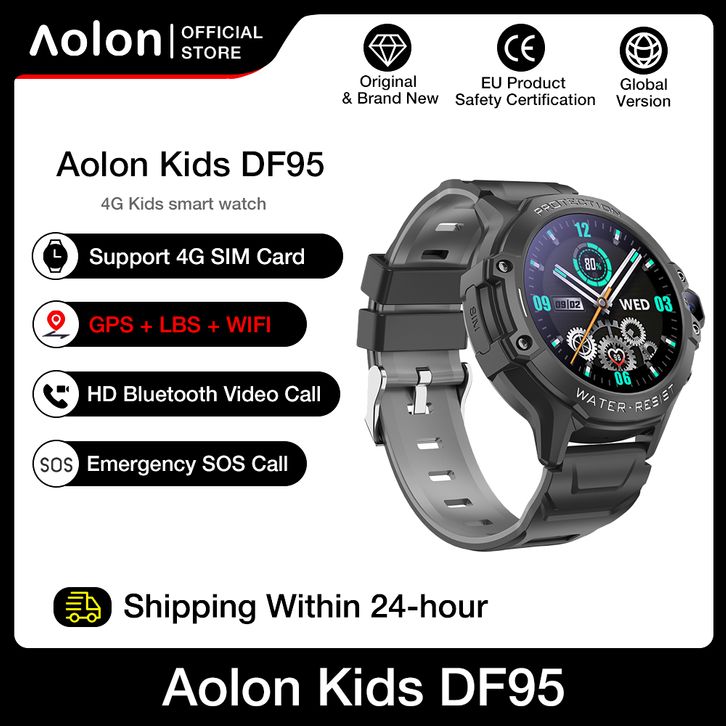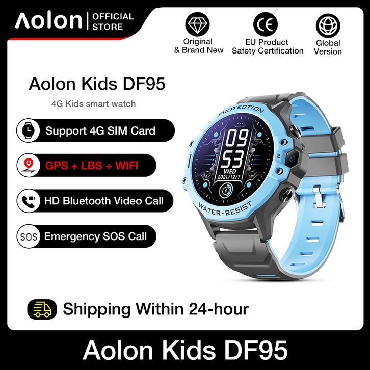 Aolon DF95 Jam Smartwatch Anak Lacak Posisi Panggilan SIM 4G Video Call GPS LBS Smart Watch Kids