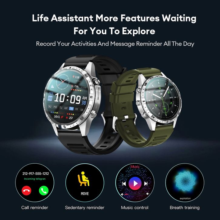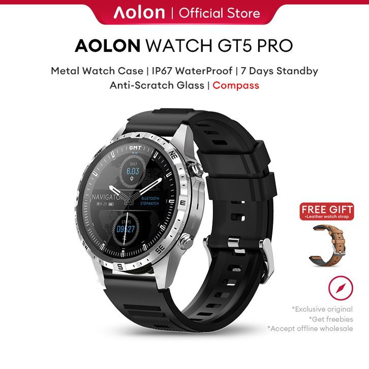 Aolon GT5 Pro Jam Tangan Smartwatch 56mm Kompas Pelacakan Olahraga Pemantauan Kesehatan Oksigen Darah