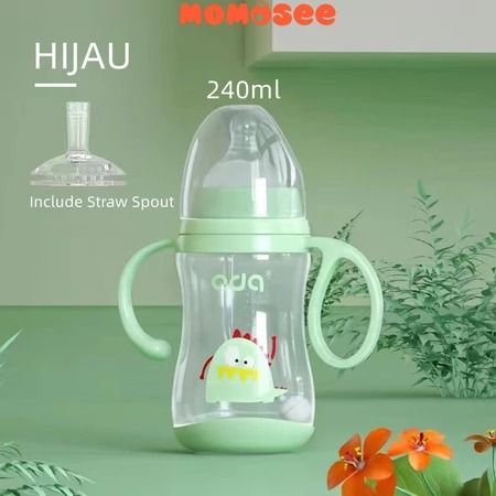 Botol Susu Bayi Leher Lebar Wide Neck PP Dot Straw Anti Kolik 240ml & 300ml BPA Free BB02