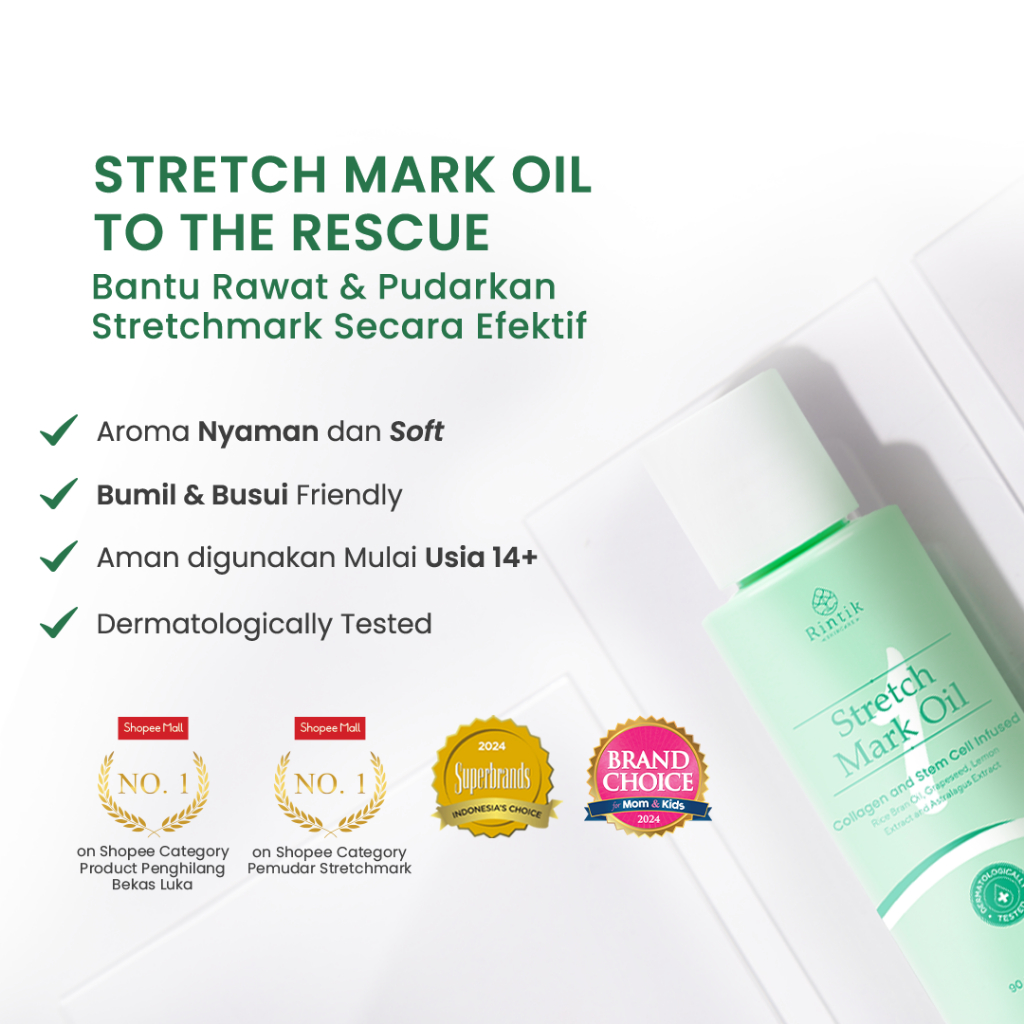 Rintik Skincare Stretchmark Oil - Terbukti Ampuh Memudarkan Stretch Mark /Selulit/Bekas Luka/Bekas luka eksim 90ml BPOM