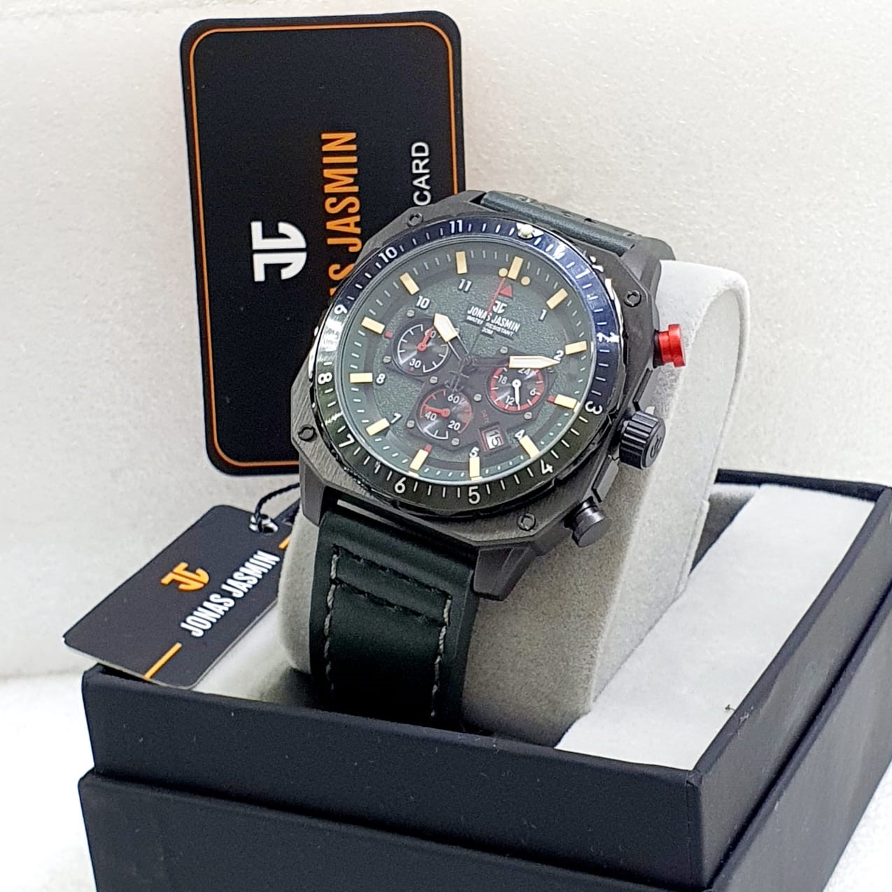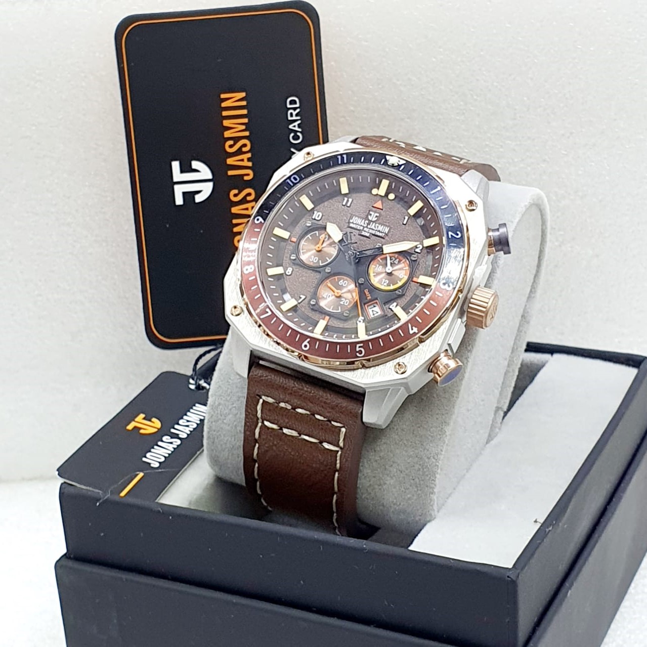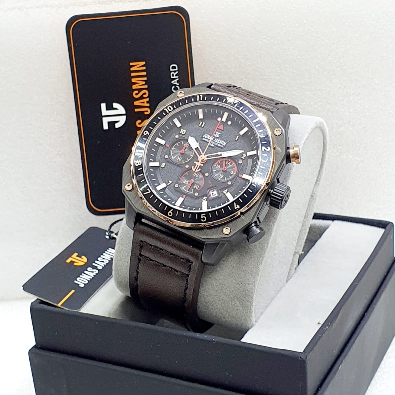 Jam Tangan Pria JONAS JASMIN 5375 Original Analog Watch Chrono Aktif Tali Kulit Free Box Garansi Resmi 1 Tahun
