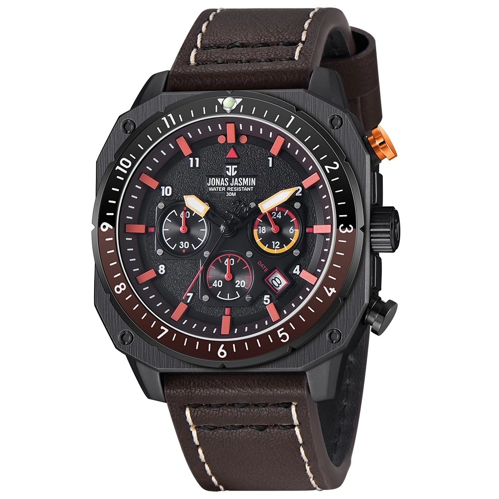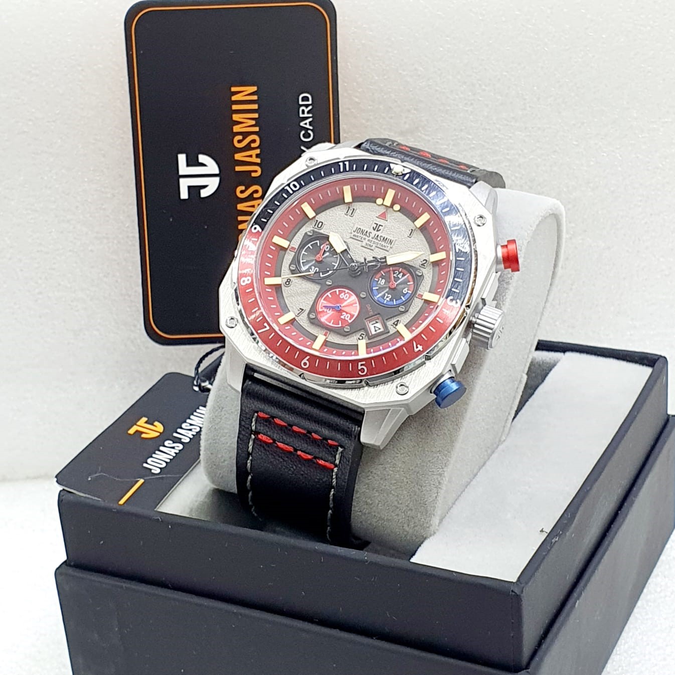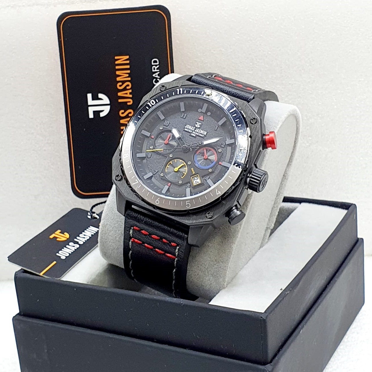 Jam Tangan Pria JONAS JASMIN 5375 Original Analog Watch Chrono Aktif Tali Kulit Free Box Garansi Resmi 1 Tahun