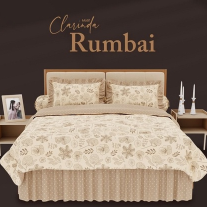 MY LOVE | sprei Bedcover set 180x200 sprei rumbai 50 cm KING NO 1 motif bunga dasar coklat tua | sogaan mewah elegan exc