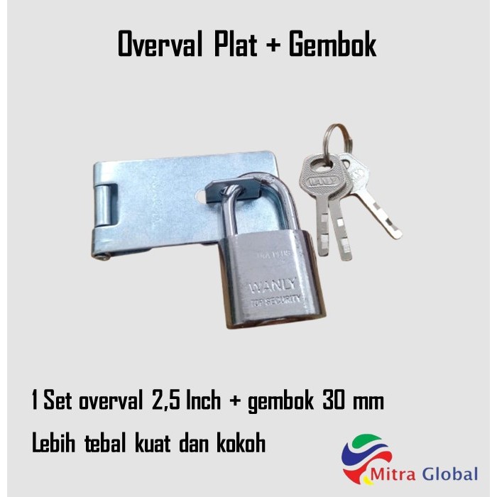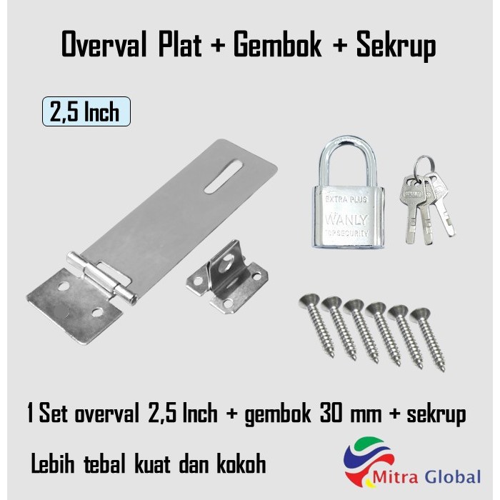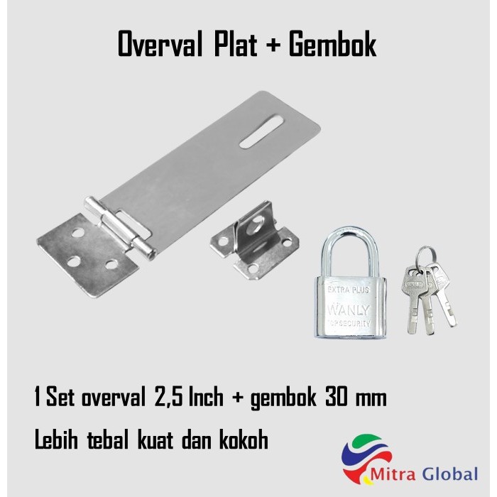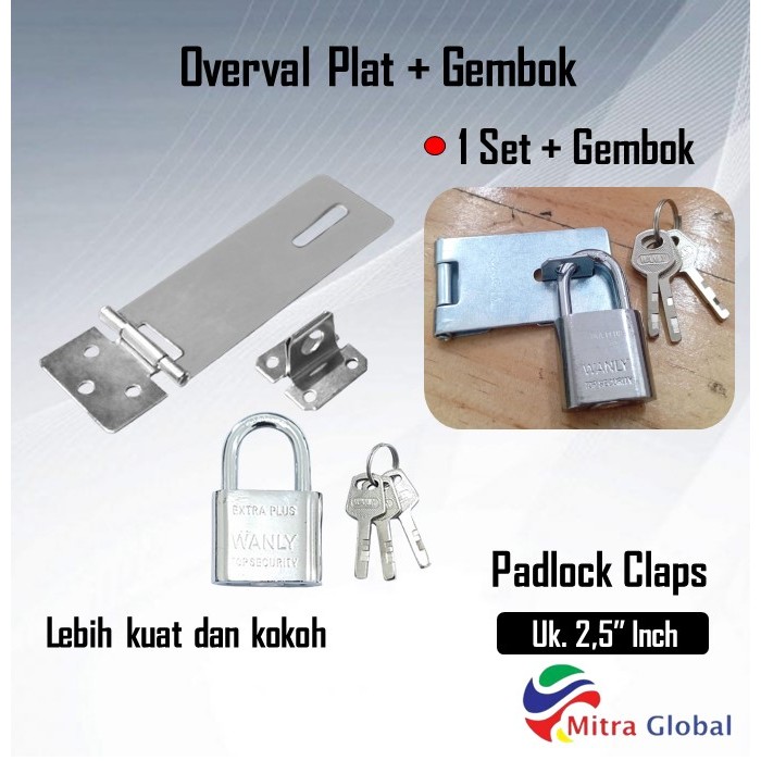 Overval Plat / Cantolan Gembok Tebal Galvanis / Paket Gembok Nekel 30 Mm + Cantolan Gembok 2.5 Inch