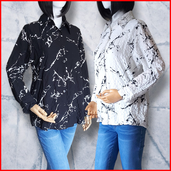 Clachella Kemeja Crincle Motif Abstrak Baju Atasan Wanita B95e8553