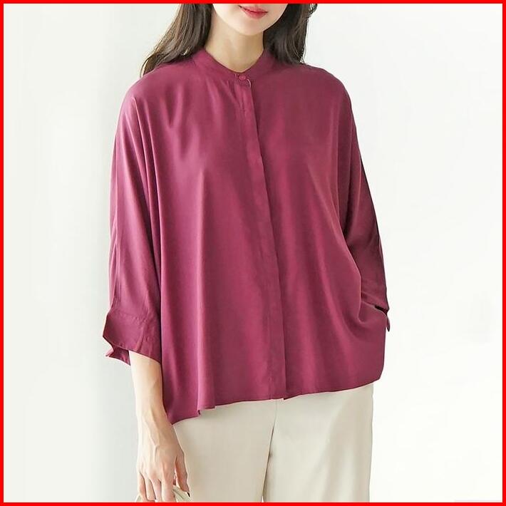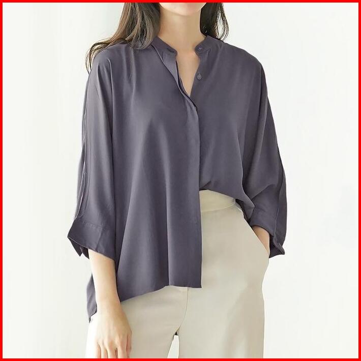 Atasan Casual Oversize Wanita Polos Baju Kantor Blouse Kancing Depan