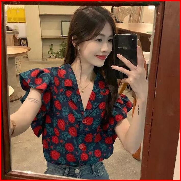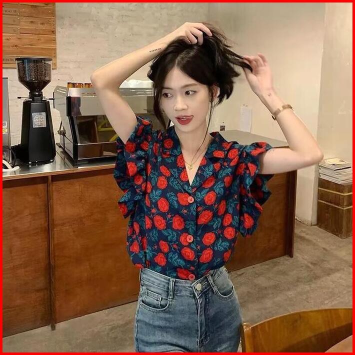 Cassie Blouse Wanita Rumbai Renda Bunga Motif Valentine Atasan Baju