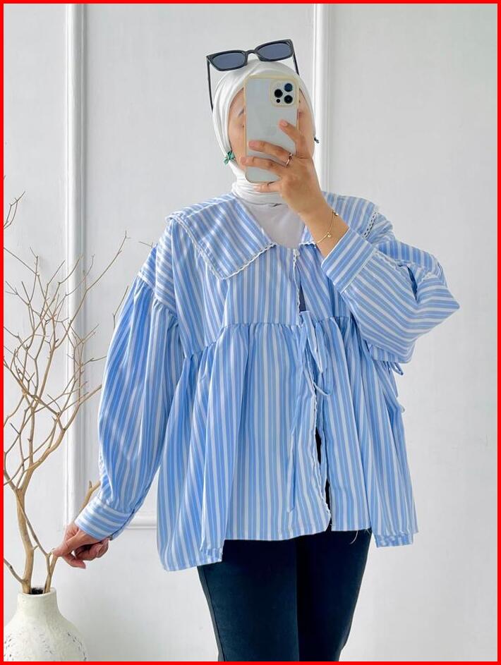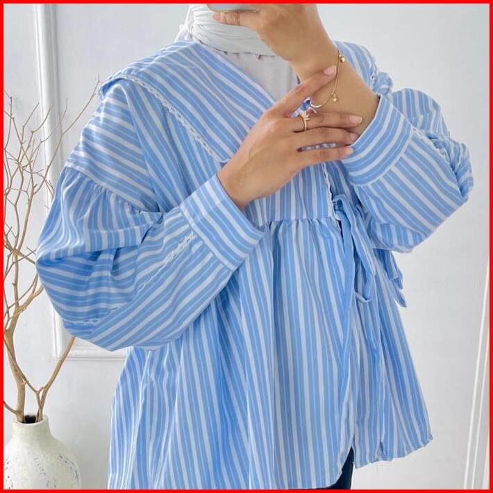 Pakaian Atasan Blouse Basic Wanita Indy Stripe Dengan Bahan Katun Motif Babydoll Untuk Tampilan Simple Kekinian