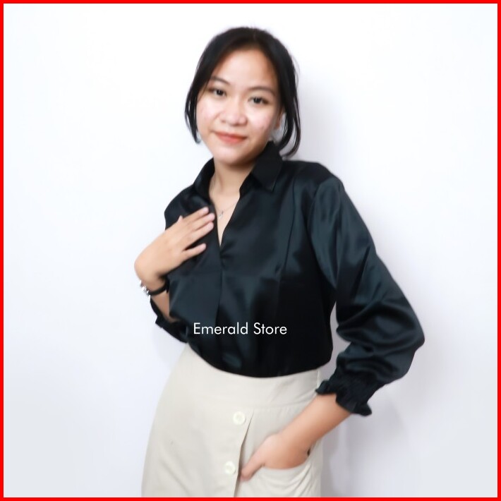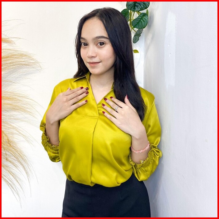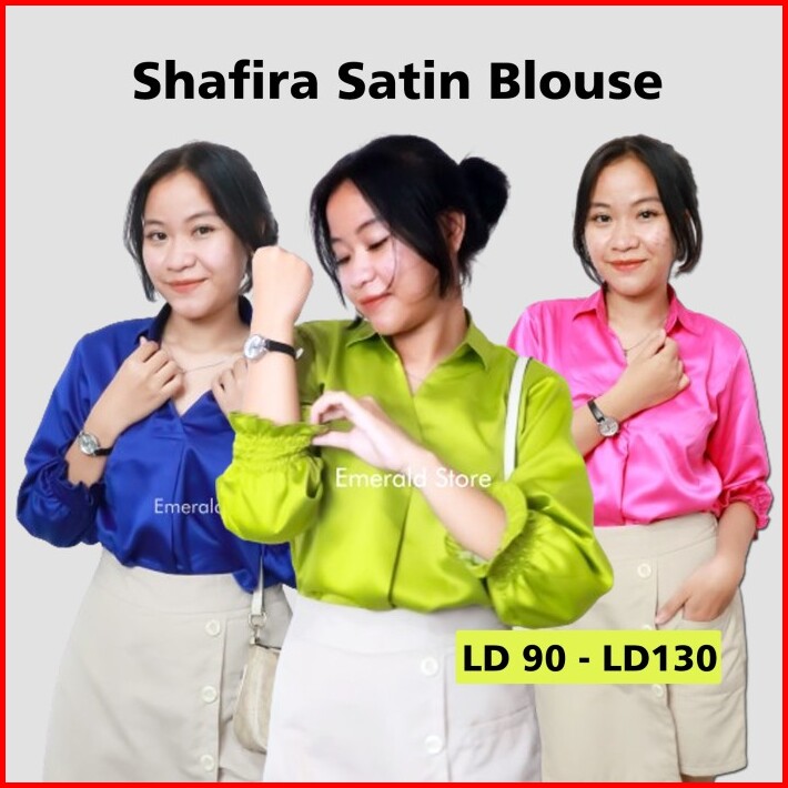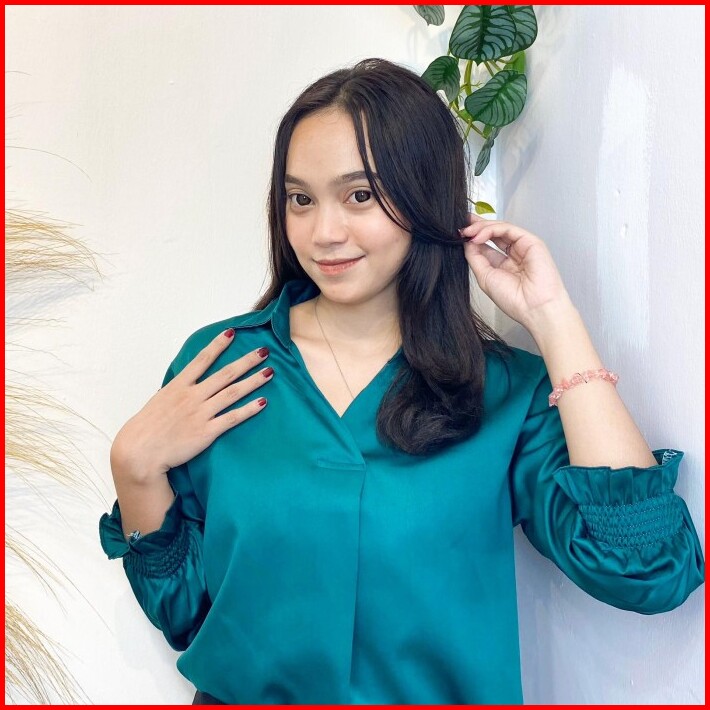 Shafira Satin Blouse Wanita V Neck Velvet Premium Atasan Top Wanita Satin Baju Cantik Formal Kain Casual Silk Panjang