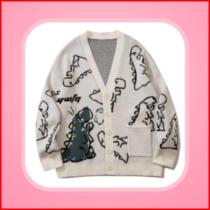 Rg Jisoo Bp Dino Streetwear Cardigan Knitwear Panjang Baju Sweater Motif Wanita Oversize Atasan Outer Cewek Casual
