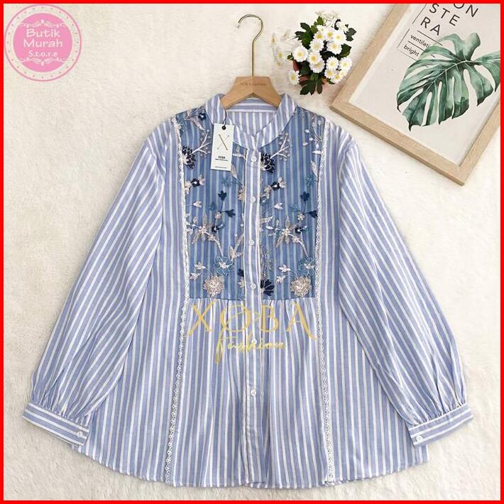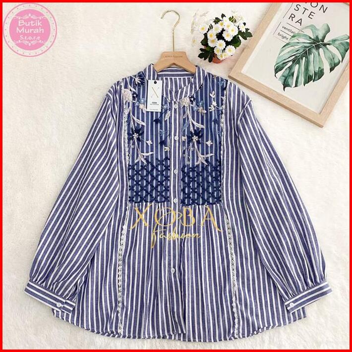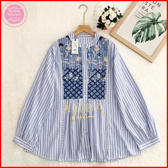 Xoba Ld 110 Dan 114 Cm 3532 Atasan Wanita Katun Mix Brukat Salur Baju Panjang Motif Cewek Garis