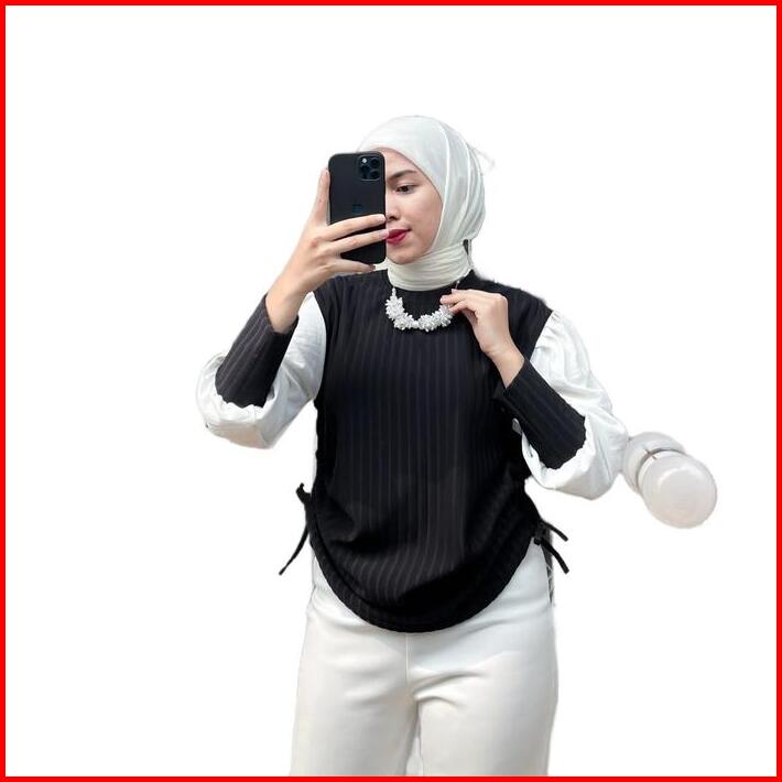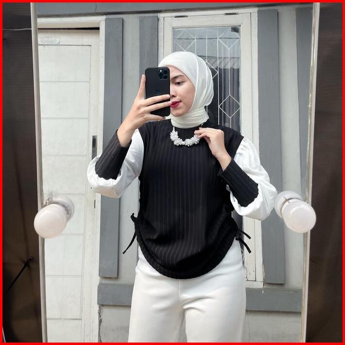 New Puffy Sleeve Top Blouse Serut Baju Casual Lengan Balon Atasan Wanita Basic Korean Style