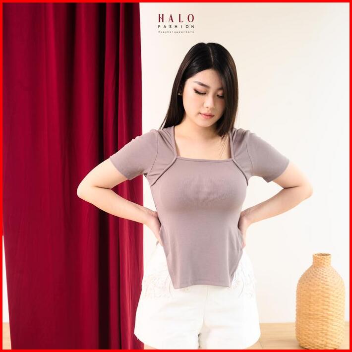 Halofashion Esther Oval Square Neck Crop Top- Blouse Baju Atasan Wanita Short Sleeve Shirt Basic Casual