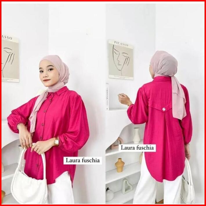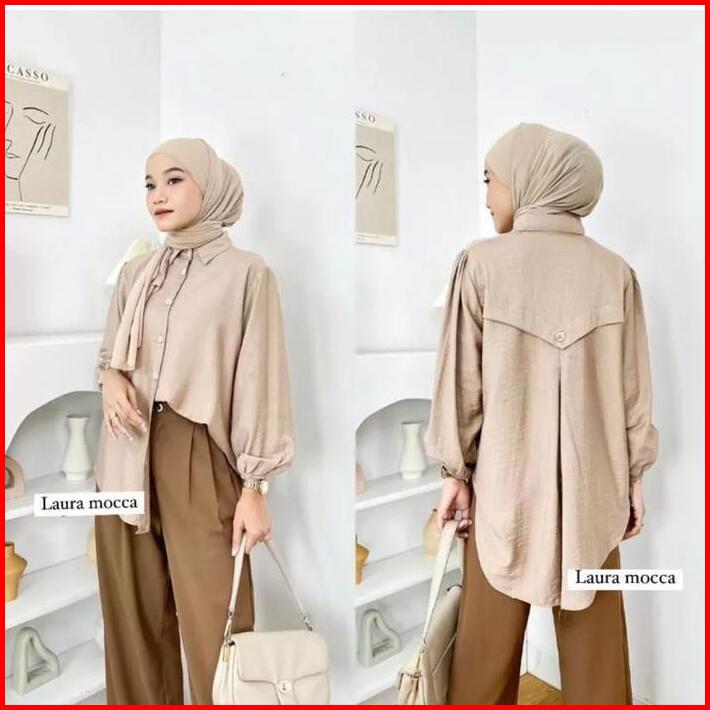Lauraa Blouse Linen Premium Wanita Baju Karet Ramadhan Collection Atasan Lebaran 2024 Muslim Panjang Fit Basic Dewasa