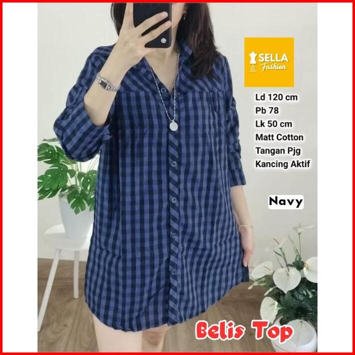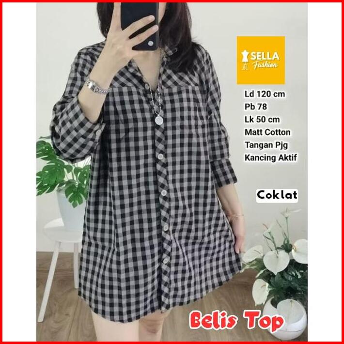 Blouse Katun Wanita Jumbo Ld 120 Motif Kotak Kotak Terbaru Pakaian Wanita Baju Atasan Lengan Panjang