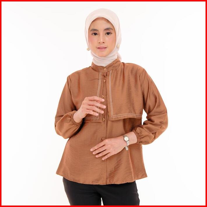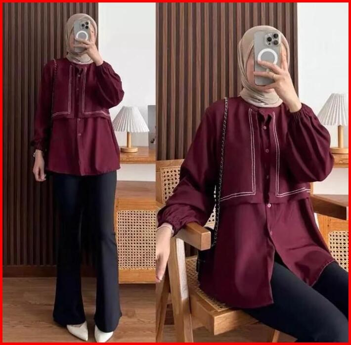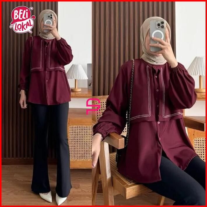 Triana Blouse- Polo Linen Layer Terbaru Atasan Kemeja Wanita Basic Baju Panjang Casual Top Dewasa Remaja