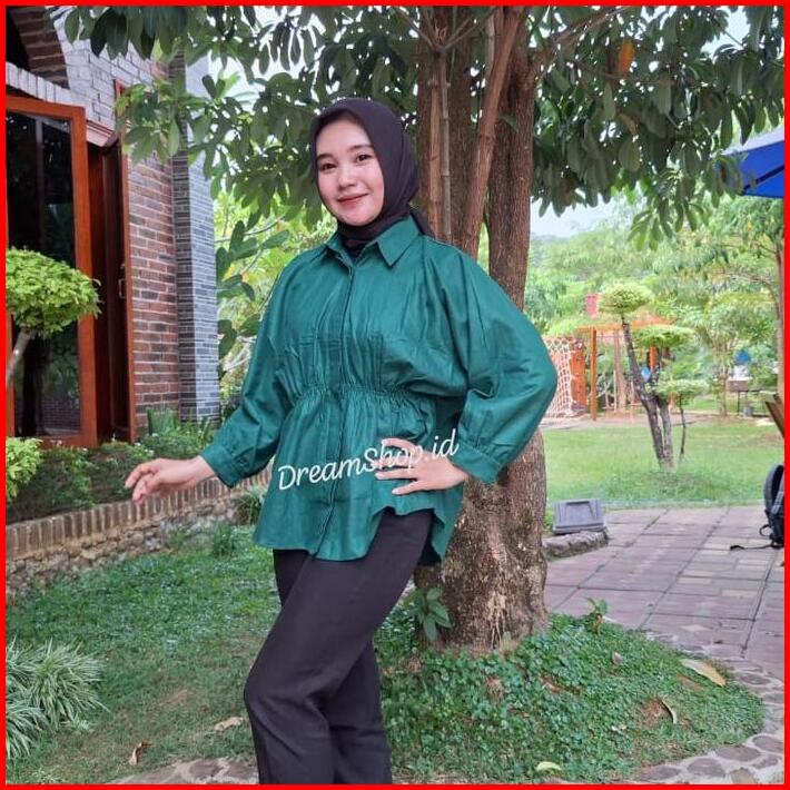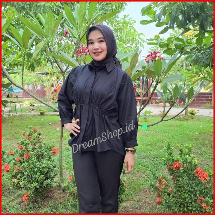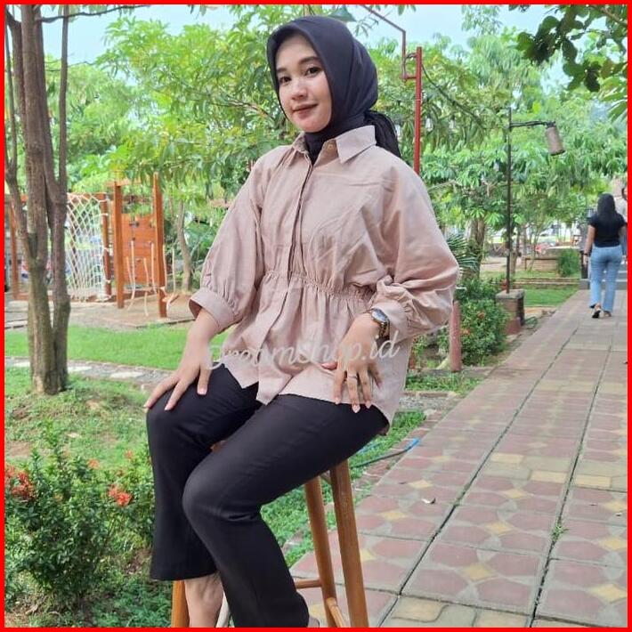 Aiko Shirt Blouse Top Kemeja Wanita Model Kerut Depan Casual Blouses Shirts Baju Fit Oversize Katun Linen Atasan Cewek