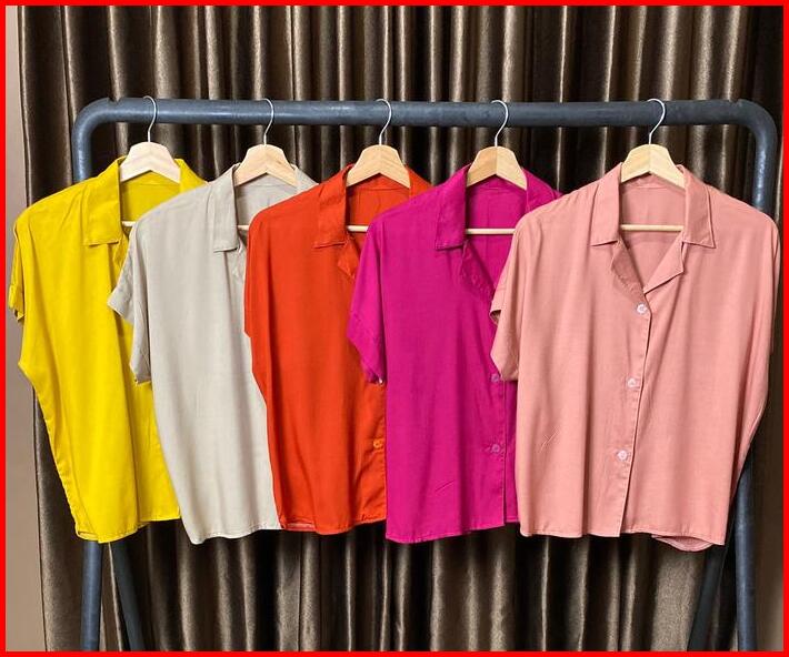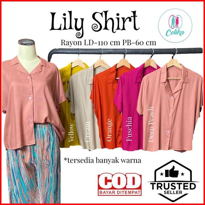 Lily Shirt Atasan Rayon Kerah V Bb 40-70 Kg Baju Wanita Kerah Kancing