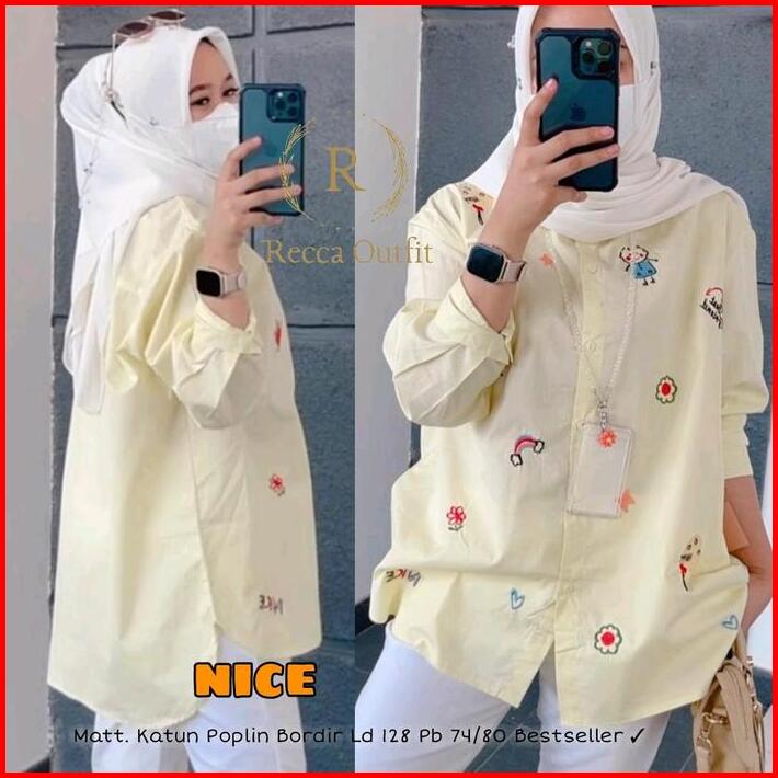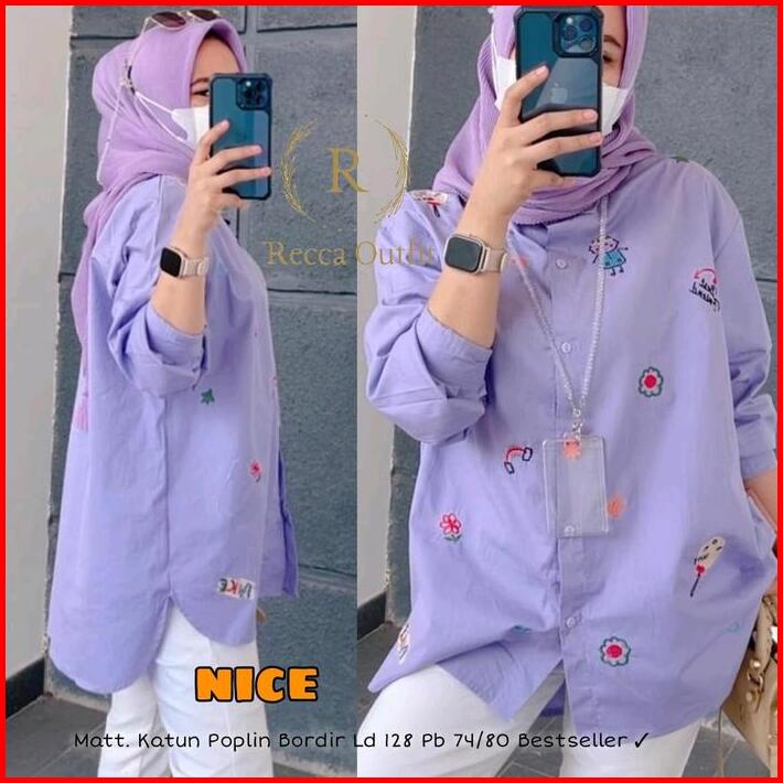 Busana Baju Atasan Wanita Kemeja Lengan Panjang Jumbo Katun Poplin Motif Bordir Mewah Cantik Oversize Ld 128 Kekinian