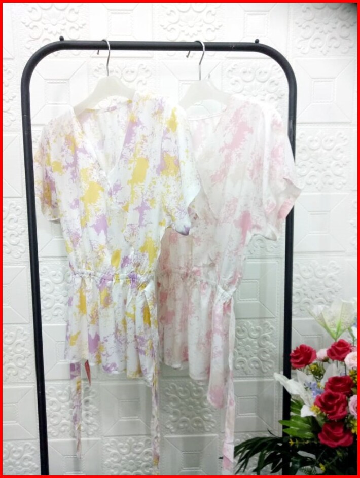 Blouse V-neck Elsa Tie Dye Baju Atasan Wanita Katun Rayon