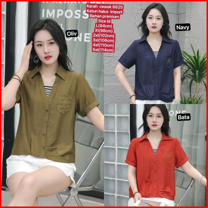 Atasan Kerah Wanita Baju Casual Katun Cewek Dewasa Pendek Kemeja Blouse