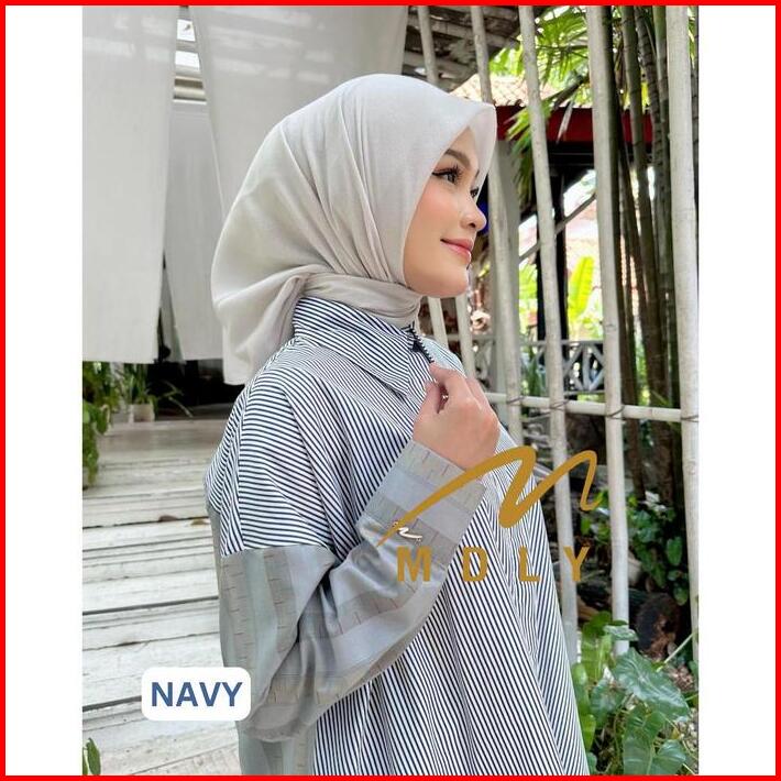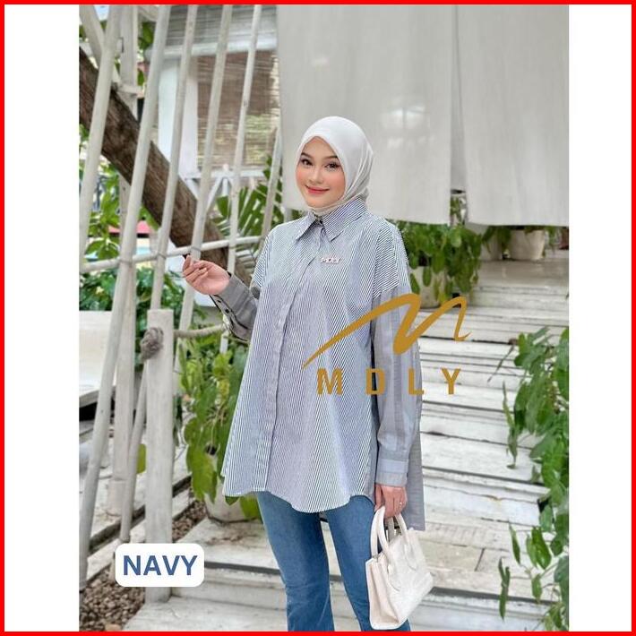 Baju Kemeja Atasan Wanita Motif Garis-garis Adeesa Stripes Shirt By Mdly Cantik Fit