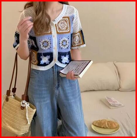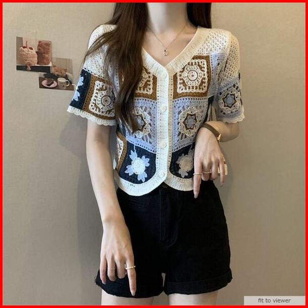 Loise Chunky Knit Top Fit Size M-l Fashion Atasan Wanita Bahan Rajut Knitted Knitwear Menerawang Hollow Lengan Pendek Ca