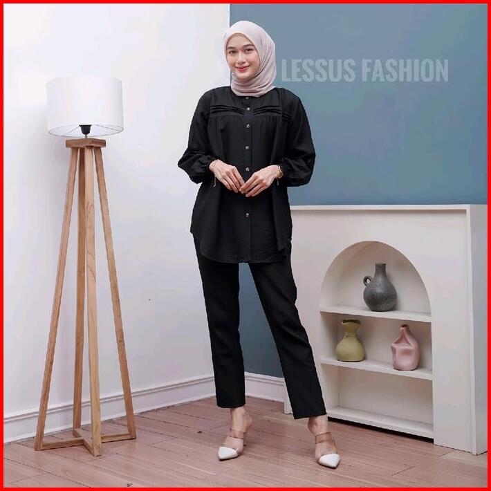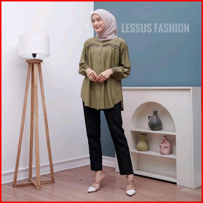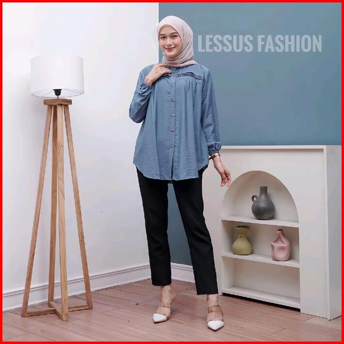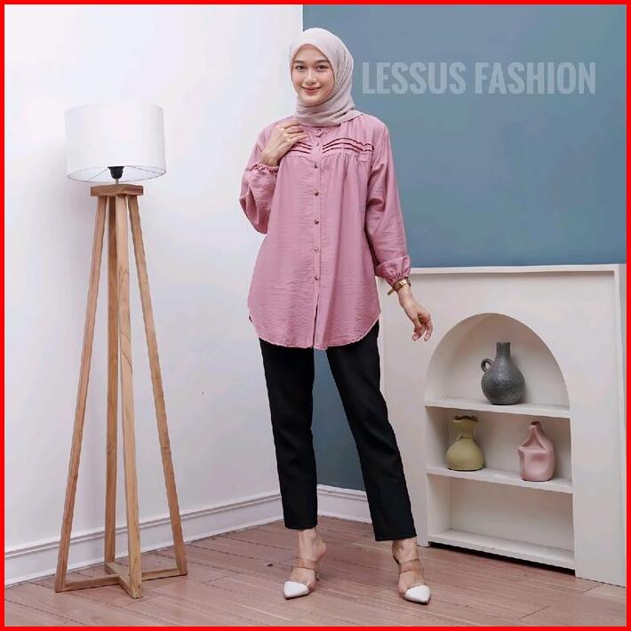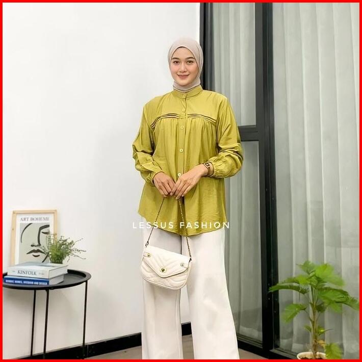 Luna Blouse Kemeja Polos Polo Linen Tangan Karet Kemeja Atasan Wanita Jumbo Polos Kekinian Baju Santai