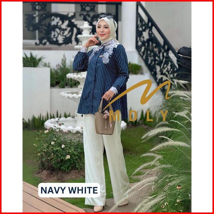 Baju Kemeja Atasan Wanita Motif Garis Shiya Stripes Shirt By Mdly