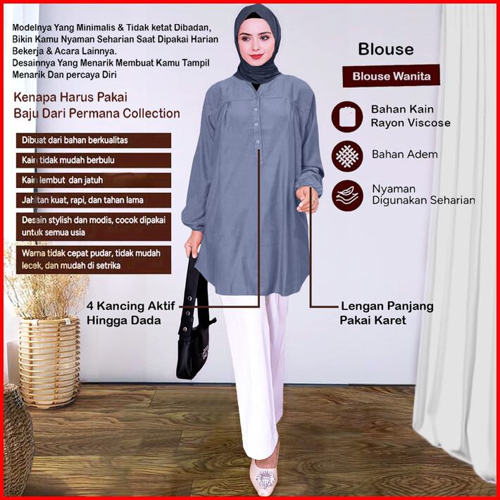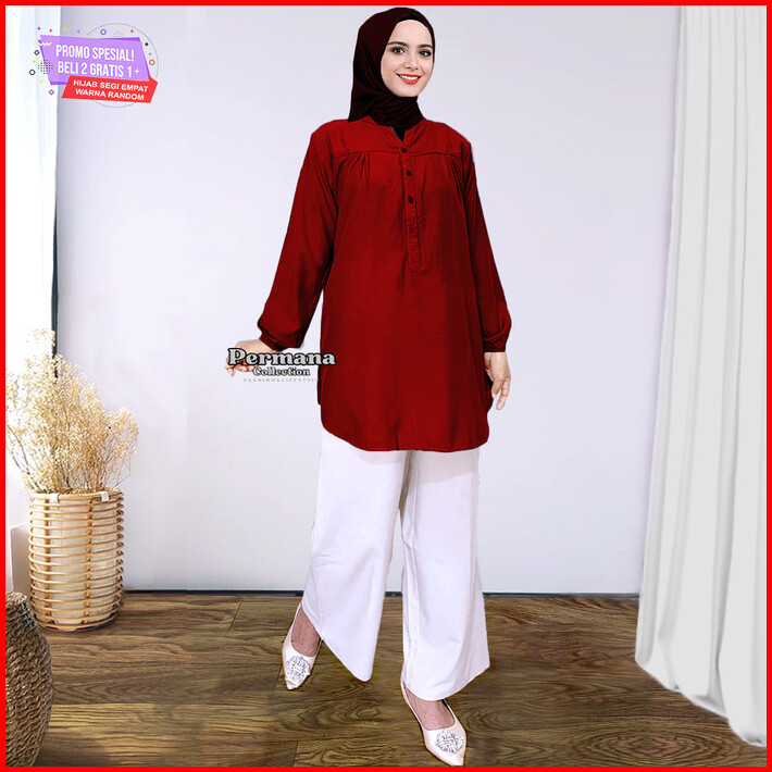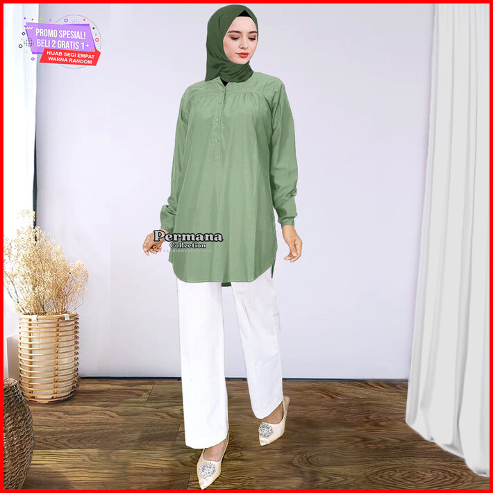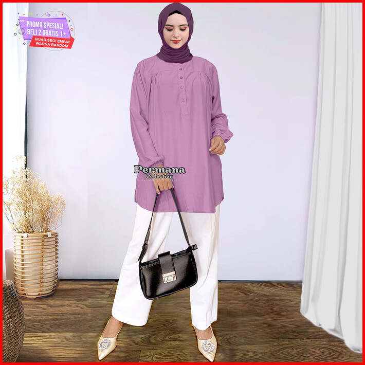 Kemeja Jumbo Fashion Muslim Lengan Panjang Baju Atasan Blouse Wanita