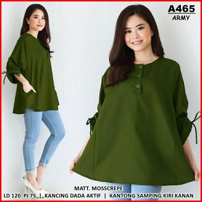 Blouse Wanita Jumbo Big Size Hijau Army A465 Xxl Xxxl Atasan Baju Hamil Casual Kekinian Modis Elegan Trendy Fashion Kore